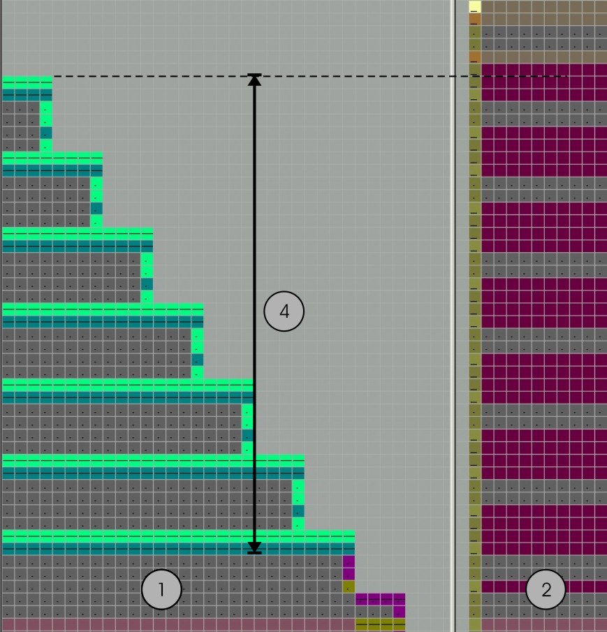 线圈比率0:2:0中的织可穿排列的高度 | ||