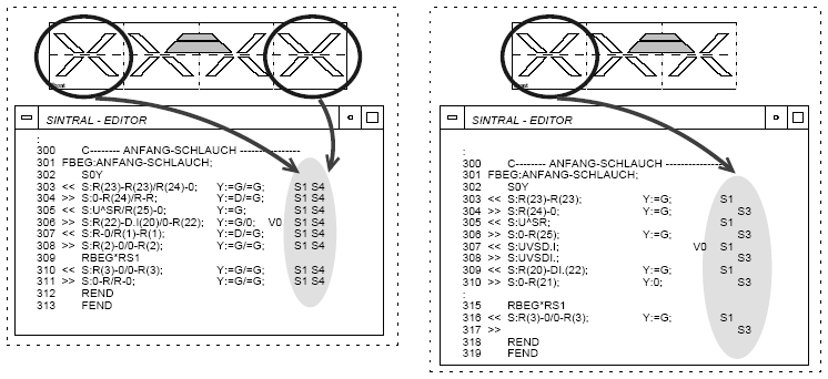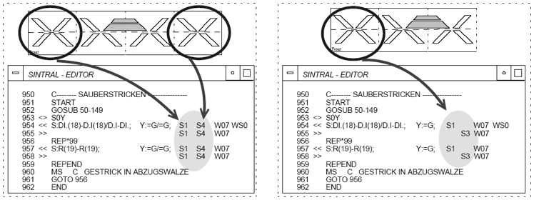 1 | 为了保证两个可互换的系统不会被无意中用作编织,所有带"SX" 的系统指令都应该被避免。也就是:自动程序或者自动功能不可能被应用。 | |
